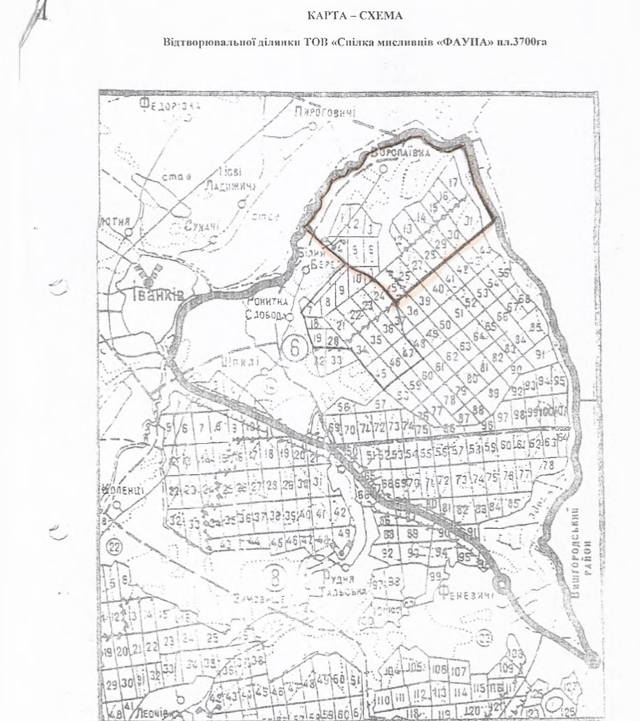 Згідно до проєкту, мисливські угіддя, що знаходяться на території Іванківського району Київської області загальною площею 8900 га строком на 49 років надаються у користування ТОВ “Спілка мисливців “Фауна”.