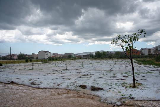 На юге Хорватии в субботу, 20 июня, выпал снег. Непогода накрыла курортные города Каштела и Трогир.