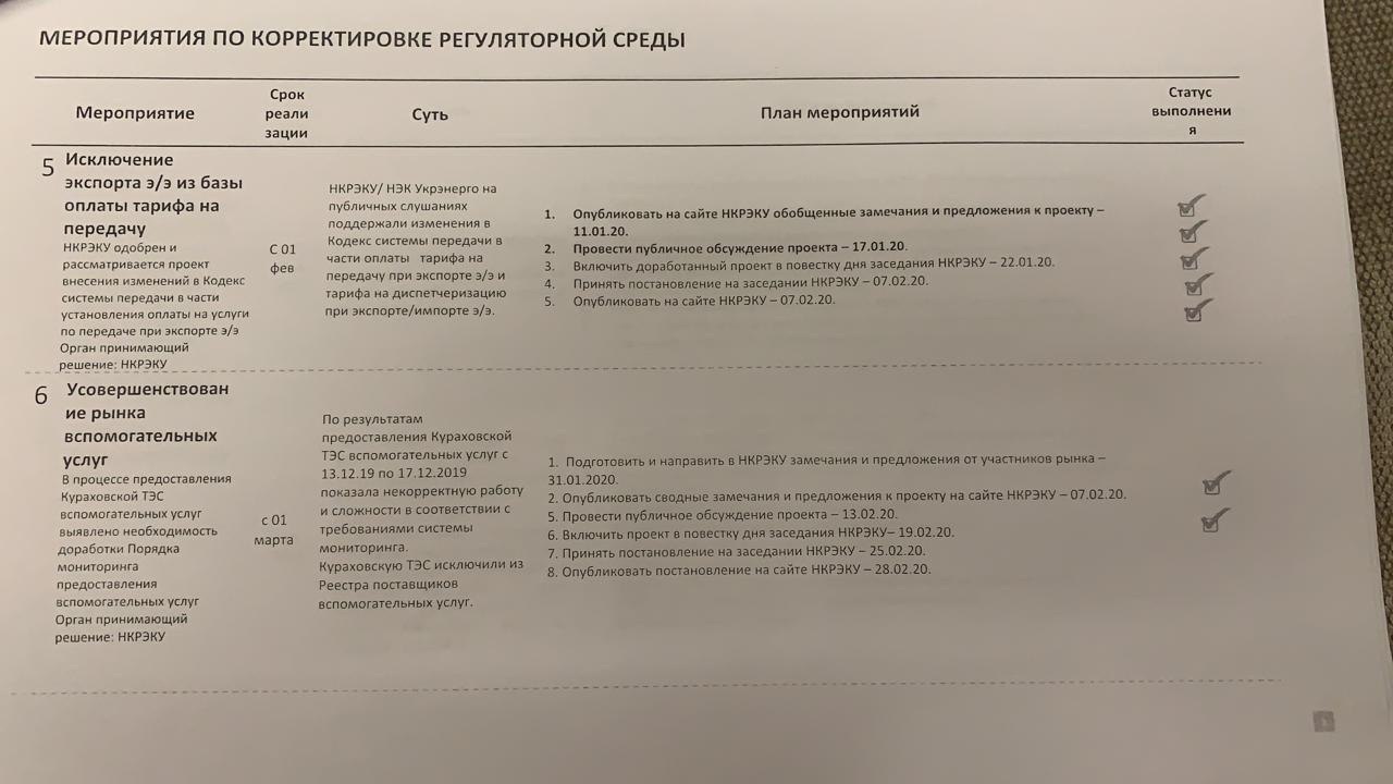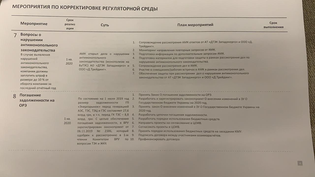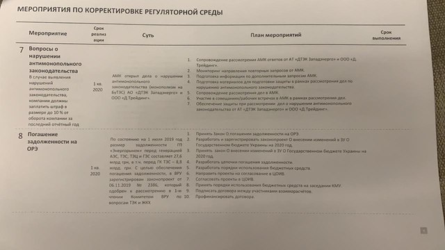 Сергей Лещенко в своем Телеграмм канале опубликовал секретные документы из офиса компании Рината Ахметова ДТЭК под названием «Мероприятия по корректировке регуляторной среды».