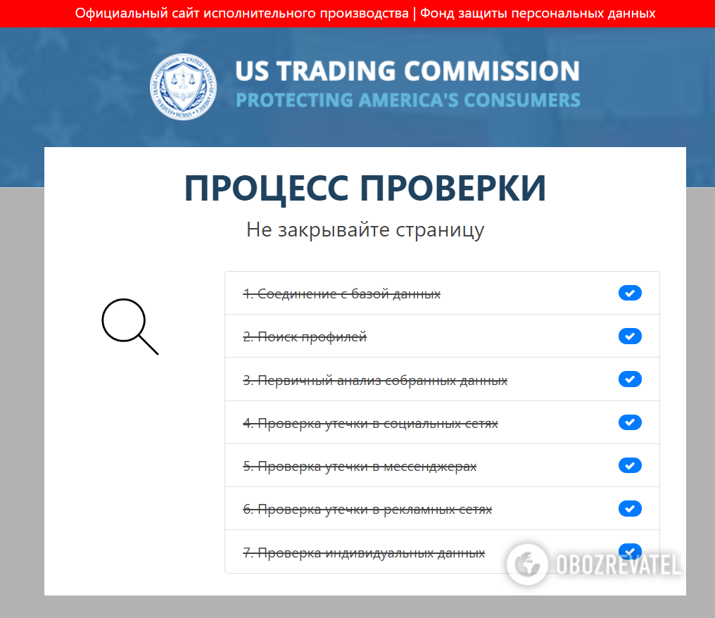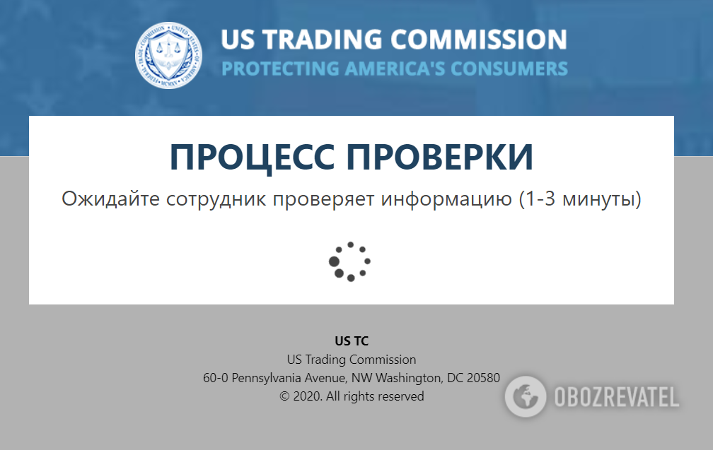 Во время проверки мы указали вымышленные данные – имя, фамилию и номер телефона. Это систему не смутило и она начала имитировать поиск в какой-то американской базе данных. Подобный "мультик" нам показывал мошеннический сайт, который недавно рекламировали в группах в Viber.