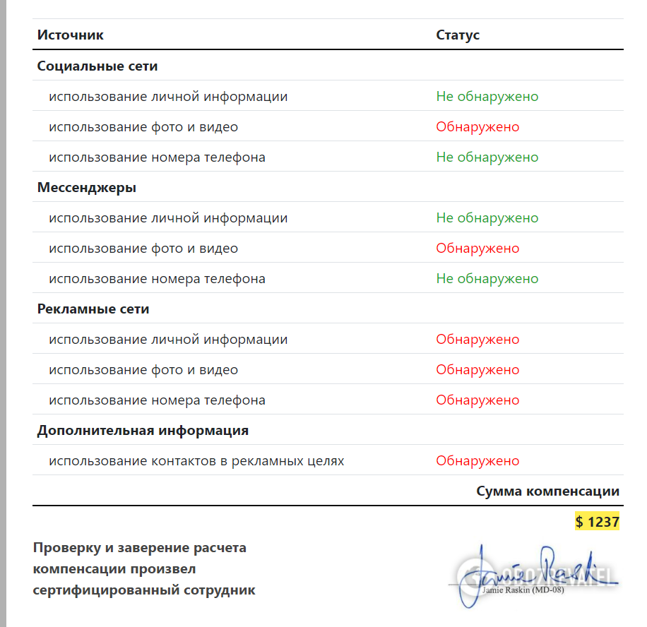 Вскоре сайт сообщил, что нашему выдуманному пользователю положена компенсация в размере $1237.