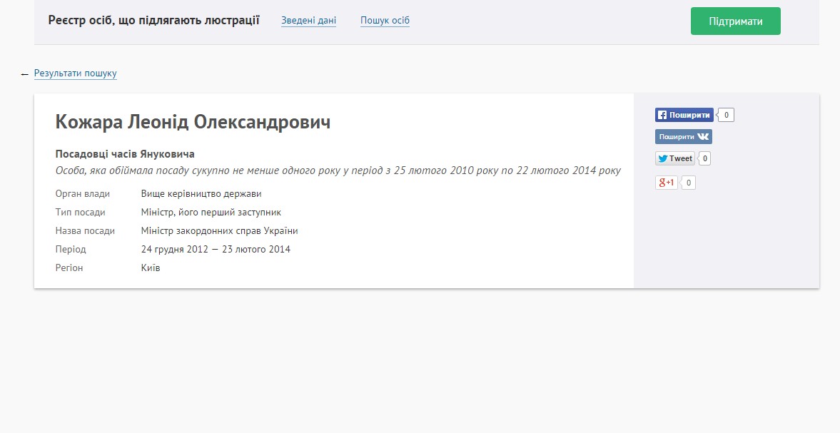 Но вот - он уже появился и опубликован. Теперь любой чиновник может легко проверить, кто из его коллег незаконно занимает должность на госслужбе и сообщить нам об этом. Да и проверять различные ведомства на предмет укрывания недолюстрированных станет не в пример легче. В общем, это далеко не победа еще (тем более, что с имущественной люстрацией вопросов будет немало), но очень важный шаг на пути к ней. Поздравляю всех и огромное спасибо Саше Дрик и остальным волонтерам Общественного люстрационного комитета.
