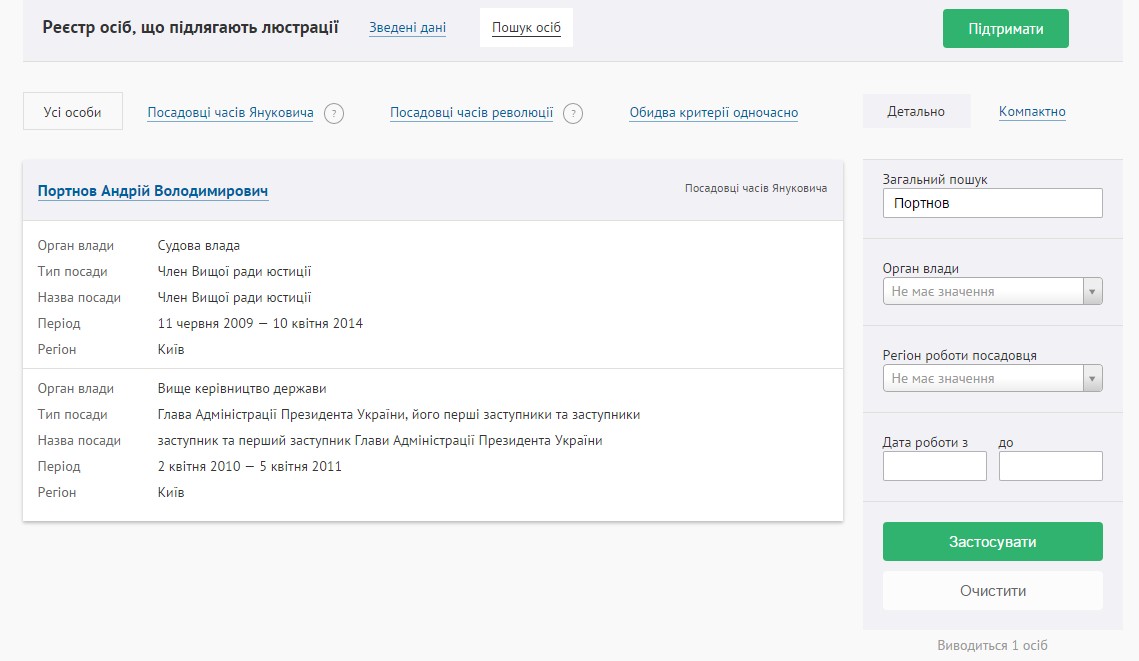 Долгое время нам было очень сложно находить чиновников, которых скрывают от люстрации, если они сменили должность. Но потом с подачи директора Департамента люстрации Татьяны Козаченко министр Павел Петренко провел через Кабмин распоряжение, которым премьер обязал всех руководителей центральных органов власти и приравненных ведомств подать информацию обо всех чиновниках, которые занимали высшие должности в государстве при Януковиче и подлежат люстрации. А департамент и сотрудничающий с Общественным советом по люстрации Общественный люстрационный комитет (это наша ГО) создали реестр таких чиновников. Если честно, то мы связывали недавние обыски в Минюсте и дома у Тани Козаченко с попыткой, в том числе, воспрепятствовать созданию такого реестра.