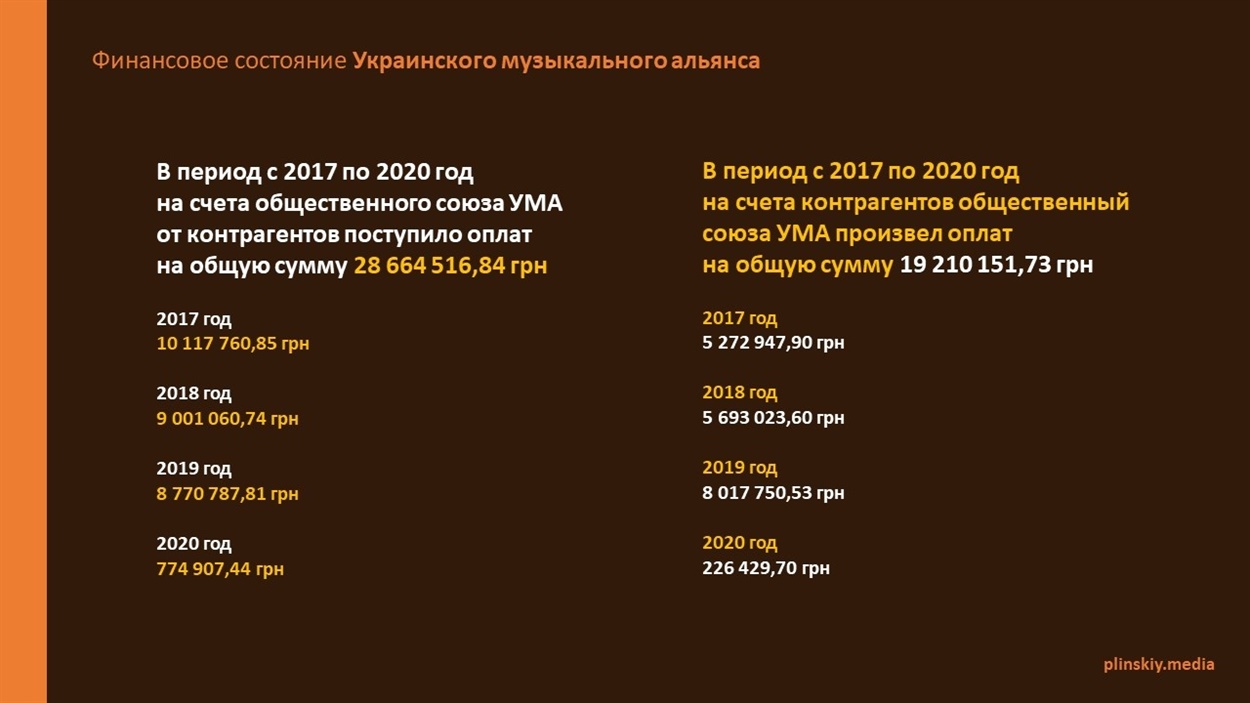 Я еще раз напомню, что за последние три года на счета УМА было отправлено 28 миллионов гривен, а распределено между «авторами» порядка 19 миллионов гривен.