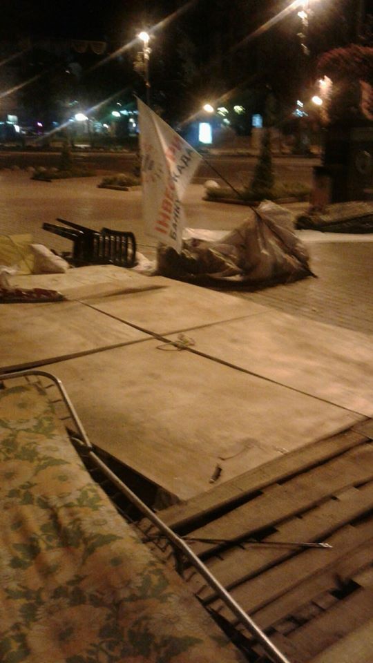 Ночью пятницы, 26 июня, неизвестные люди напали на палаточный городок инвесторов банка «Аркада», установленный под зданием Киевской городской государственной администрации.