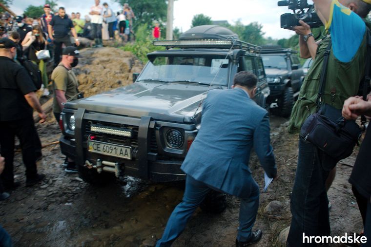 В частности, сельчанин снял свои сапоги, чтобы гарант не испачкался, инспектируя местность. Об этом сообщает hromadske.