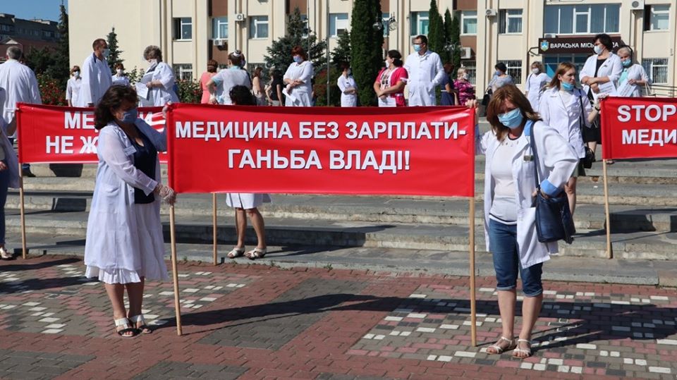 "В городе Вараш в Ровенской медики местной больницы вышли на акцию протеста к стенам городского совета. Причина - с июня нет денег на зарплату. По данным полиции, в мероприятии принимают участие около 200 человек", - отмечает мэр.