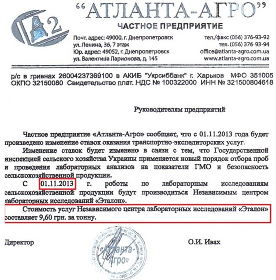 Такою була ситуація до осені 2013 року. Потім неофіційна плата за отримання сертифіката якості зерна зросла. Це відбулося через залучення до "схеми" такого собі "Незалежного центру лабораторних досліджень "Еталон".