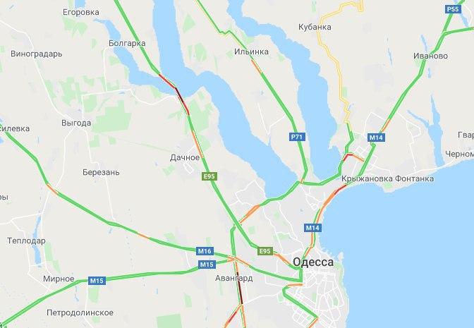 Соответствующее фото публикует издание «Одесса Медиа». Сообщается, что на выезде из Одессы пробка растянулась километров на 10. Самое большое скопление автомобилей наблюдается в районе моста через Хаджибеевский лиман.