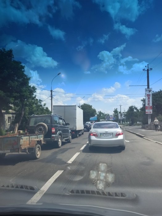 Пробка начинается на въезде в Николаев со стороны Одессы. Сотни автомобилей застряли в Варваровке. Поток транспорта движется очень медленно.