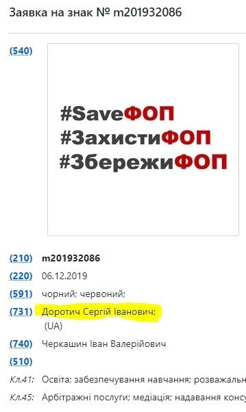 Во-первых сам лозунг SaveФОП с которым люди ходят по улицам - торговая марка которую на свое имя регистрирует сейчас Сергей Доротич.