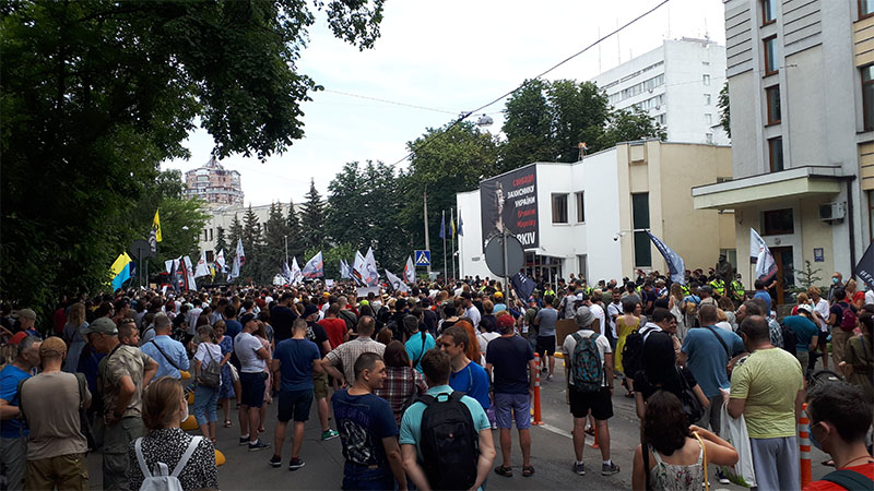 В настоящее время участники акции направляются колонной к Офису Президента и Министерству внутренних дел.