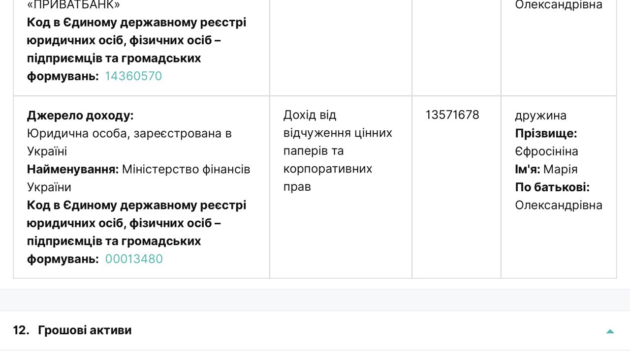 Как стало известно в ходе изучения электронной декларации ее мужа, главы Национальной комисси фондового ринка и ценных бумаг( НКФРЦБ ) Тимура Хромаева, за 2018 и 2019 гг., Мария Ефросинина вполне успешно освоила азы финансовой политики и за 2 года заработала на купле/продаже облигаций внутреннего гос займа(ОВГЗ) почти миллион долларов США. И почти 100 тыс долларов на выплате процентов по ним.
