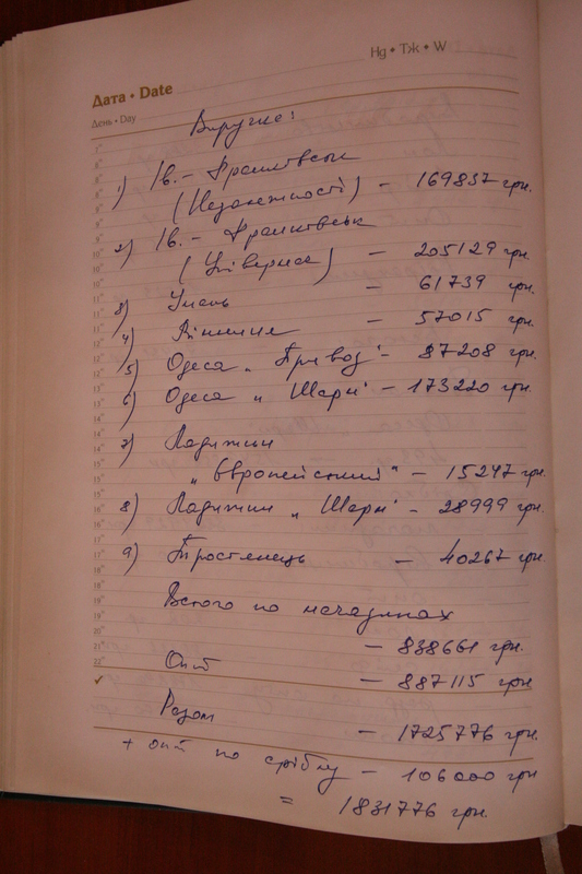Податківець Геннадій Мазур цю справу не просто прикривав, а обліковував всі оборудки подільської ювелірної компанії, здавав в оренду приміщення цій конторі, і вів переговори про всі махінації з золотом. Підтвердження тому – «золотий щоденник», якого знайшли у Мазура під час обшуків. Там податківець найретельнішим чином, надзвичайно педантично записував усі витрати і доходи. Фіксував не лише дані з реалізації золота в «підшефних» магазинах, а й навіть ціну його наукового звання, суми, які мав отримати зі своїх боржників та особисті витрати своєї дружини ( з примітками «дорого»).