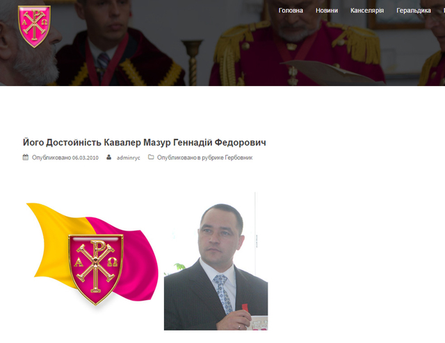 Зараз на інтернет-сторінці ордена Хреста про Мазура «ні «гу-гу». Видно, якийсь політконсультант порадив звідки щезнути. Але хворобливе бажання Мазура носити масонські значки фотозафіксовано. Як і належить таким «лицарам», Мазуру за окрему плату видали рицарський плащ, перстень, титульний знак і родовий герб, про які зараз він не згадує, а навіть відрікається. Зараз Мазур вже став ревнителем православної віри, богослухняним прихожанином новоствореної православної церкви. І щедрими подарунками вимолює колишнє відступництво.