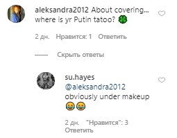 Подписчики поинтересовались, куда же делся рисунок-оберег, посвященный Путину. Пока Полунин не ответил, но прозвучала версия, что татуировка замаскирована под слоем косметики.