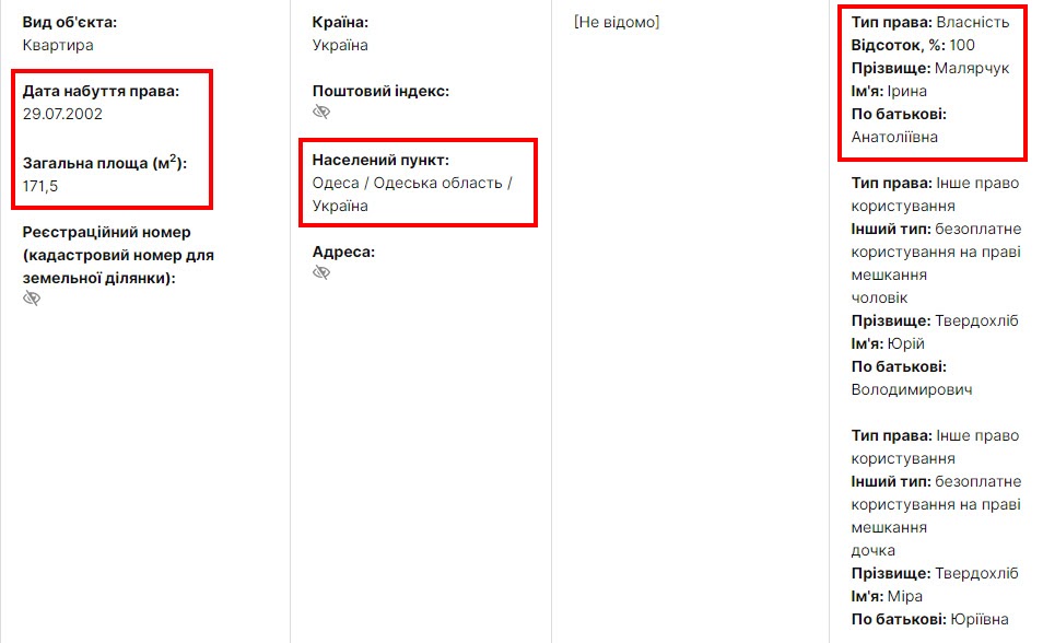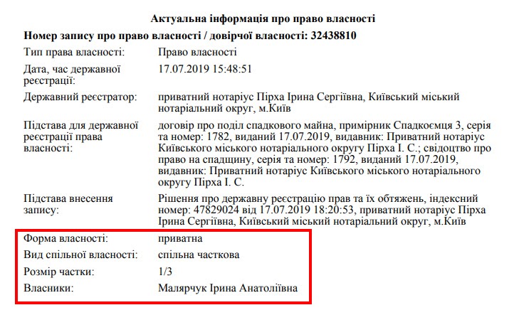 «Отец подарил практически все: дачный дом в Закарпатской области, землю, квартиру в Киеве, паркоместо и «бизнес-партнеров» мамы, с которыми она торговала, квартиру в Одессе». Так судья Малярчук пояснила наличие у нее ценной недвижимости на миллионы гривен.