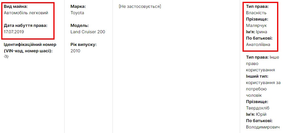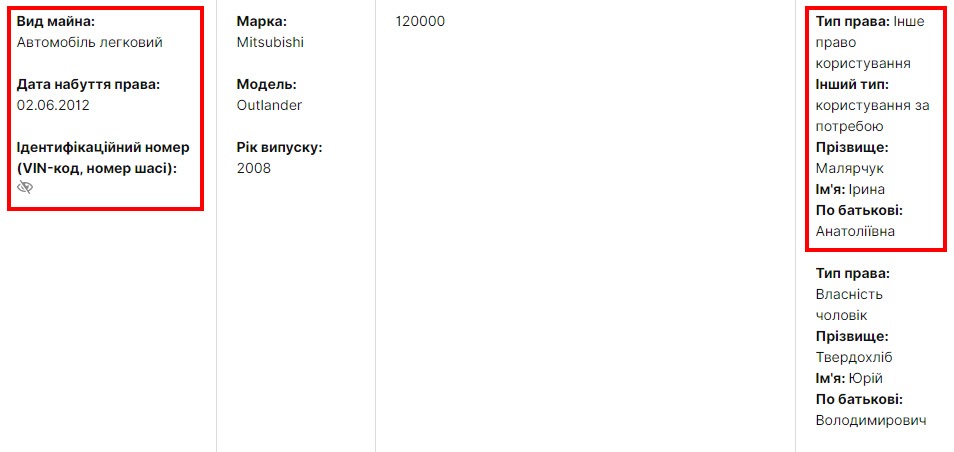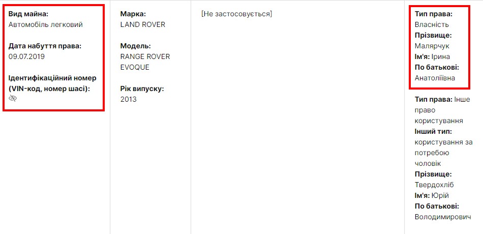 Также судейская семья обеспечена достойным транспортом. Оцените сами, с 2012-го Юрий Твердохлиб имеет в собственности Mitsubishi Outlander с прицепом, а судья Ирина Малярчук ездит на работу вершить правосудие за рулем RANGE ROVER EVOQUE 2013-го года выпуска, а еще недавно на нее зарегистрирован унаследованный Land Cruiser 200. Стоимость обоих автомобилей в декларации не указана.