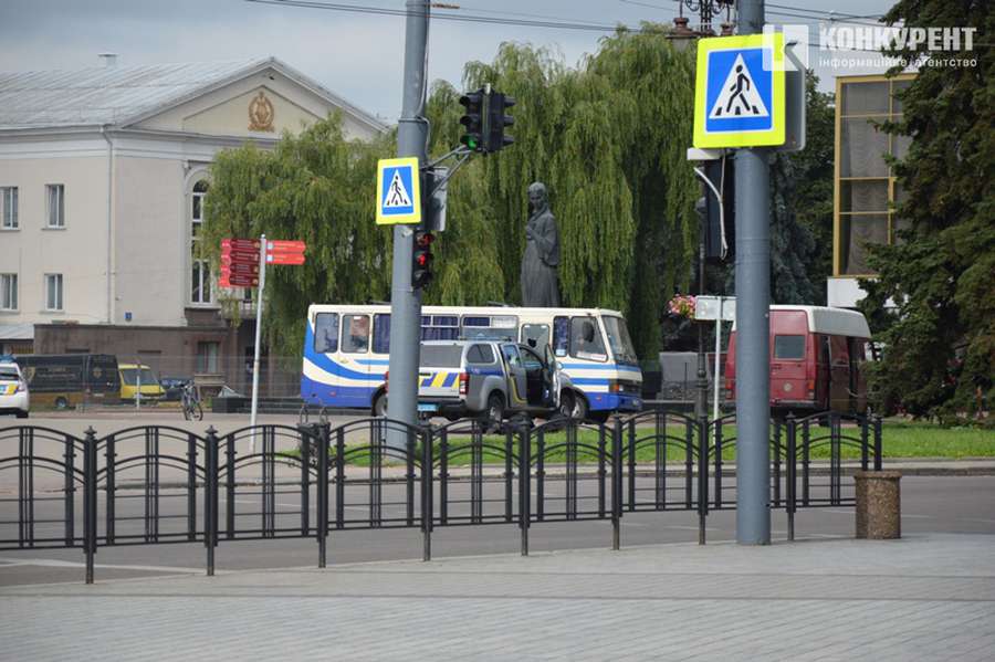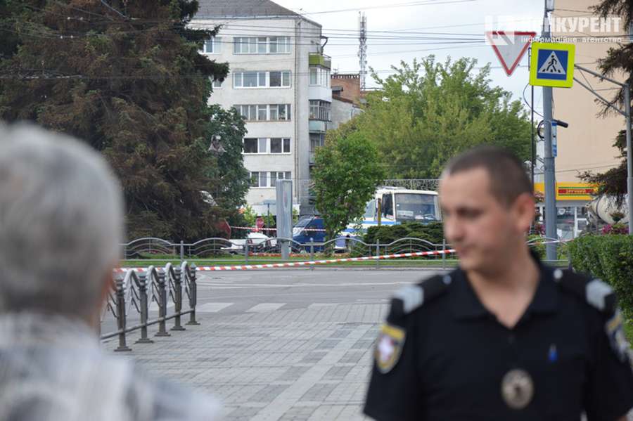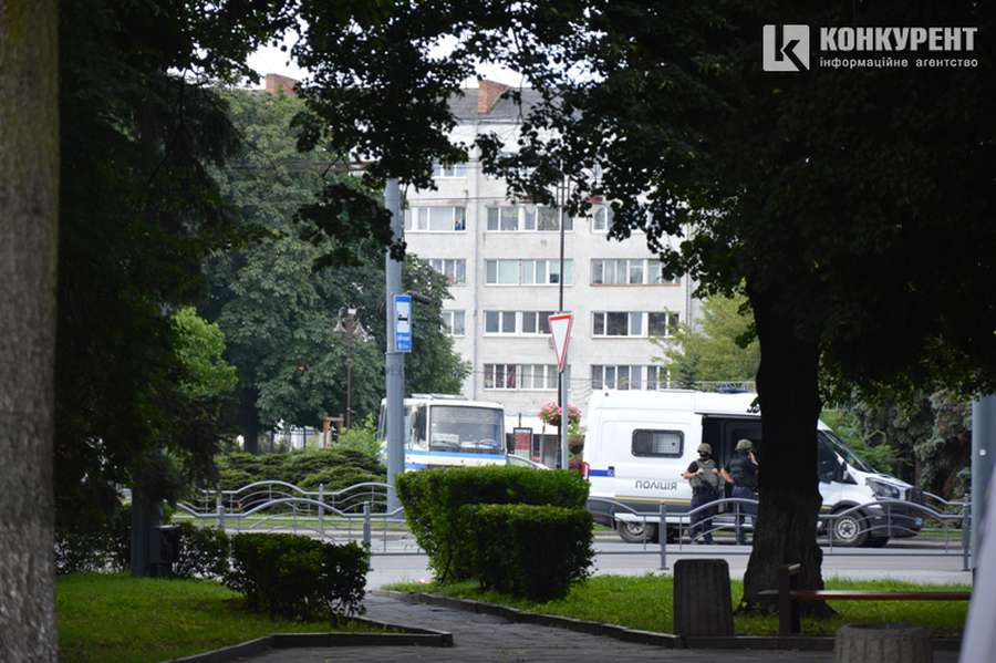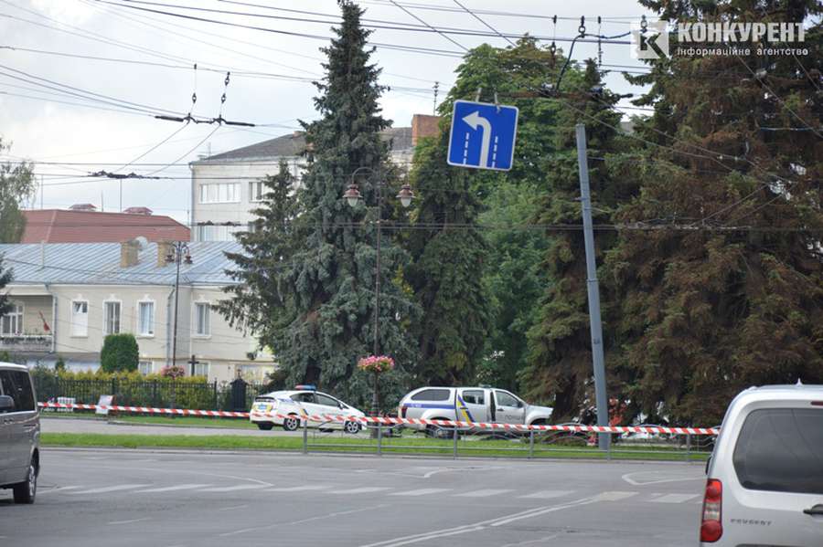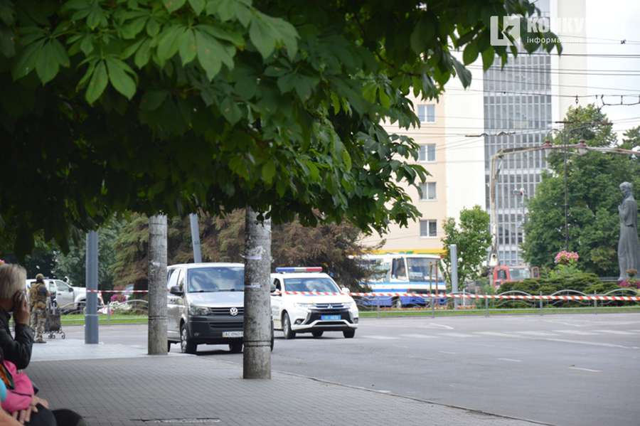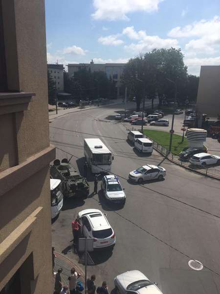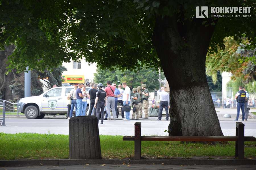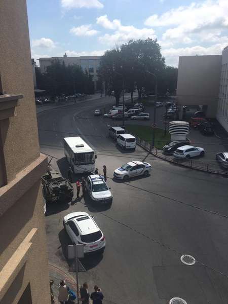 Про це він сам повідомив у поліцію 21 липня. Станом на 11 годину ранку центр міста повністю огороджений. Ані транспорт, ані цивільних не пускають. На місце приїхав навіть БТР нацгрардії.