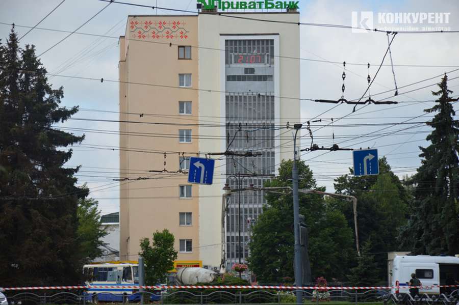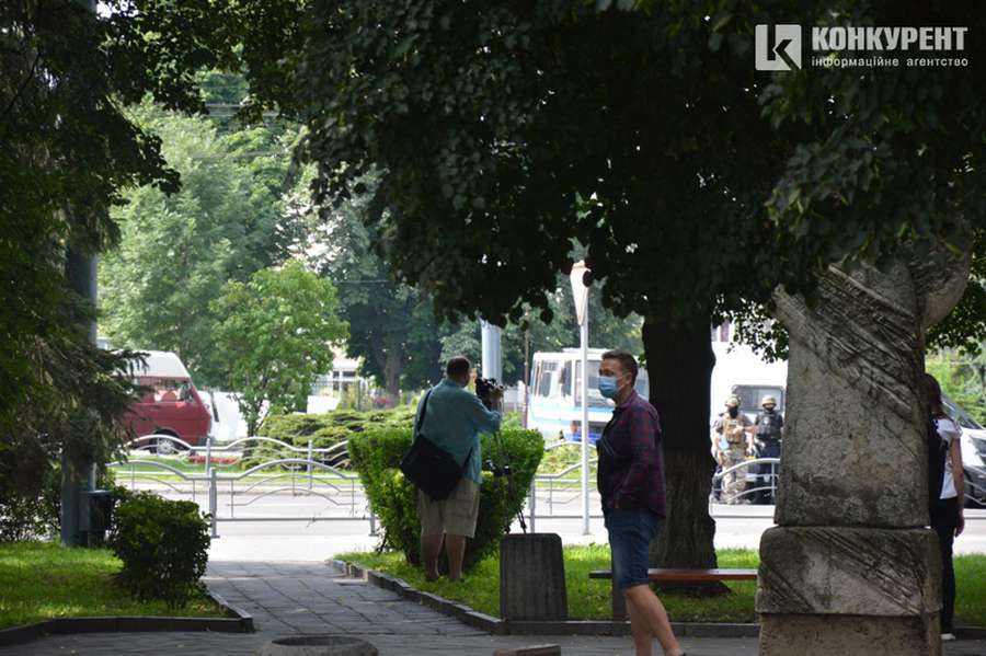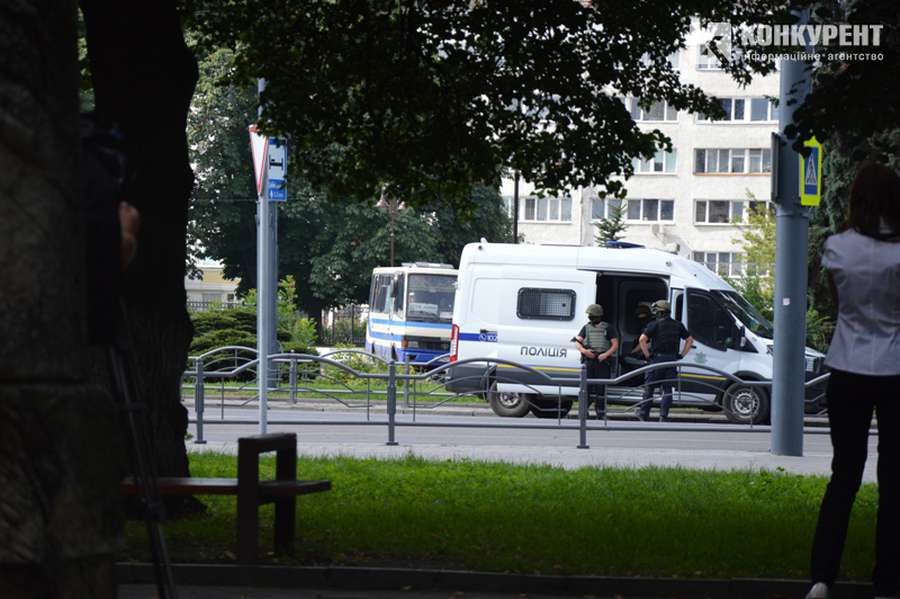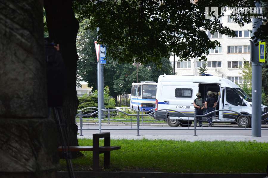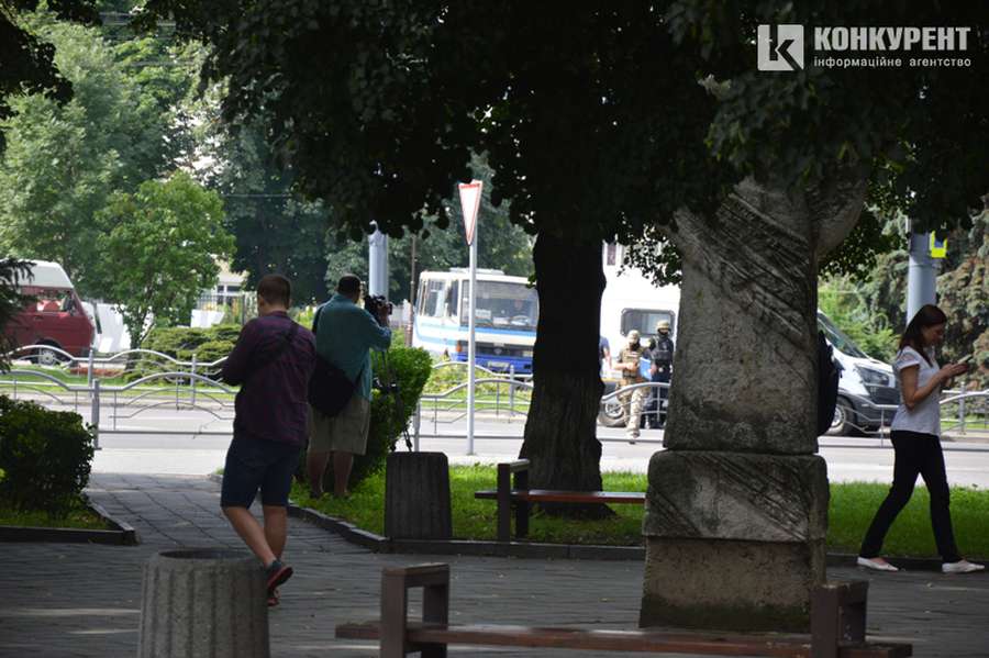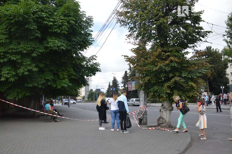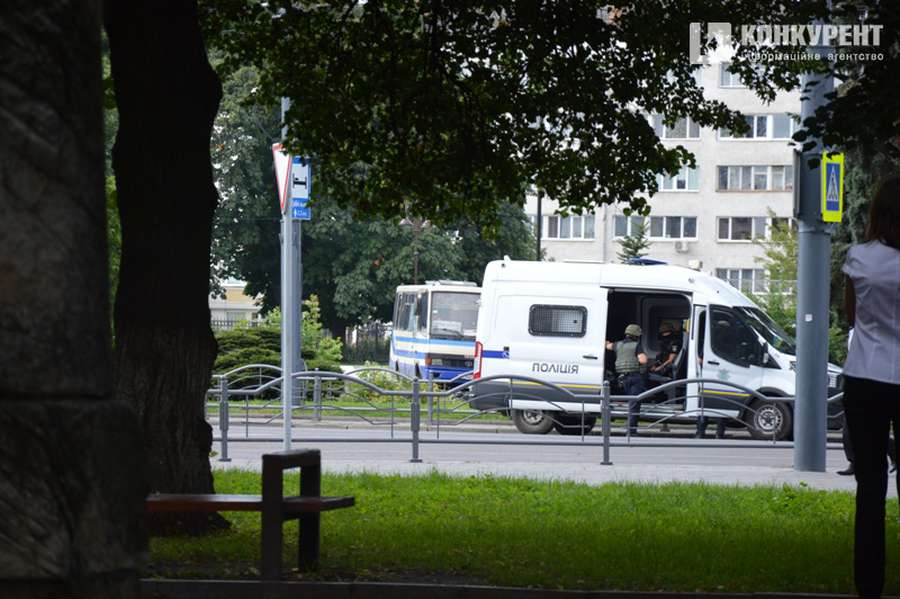 Про це він сам повідомив у поліцію 21 липня. Станом на 11 годину ранку центр міста повністю огороджений. Ані транспорт, ані цивільних не пускають. На місце приїхав навіть БТР нацгрардії.