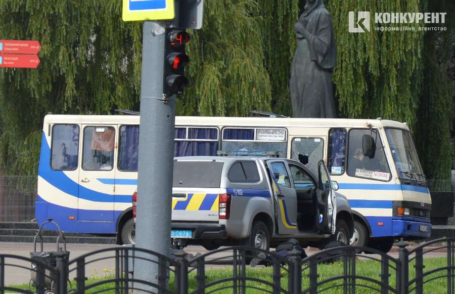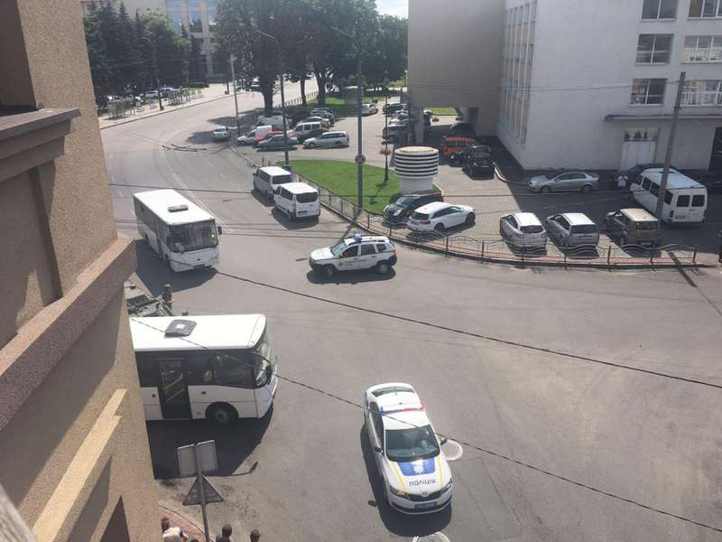 У центрі Луцька невідомий взяв у заручники пасажирів рейсового автобуса і погрожує його підірвати.