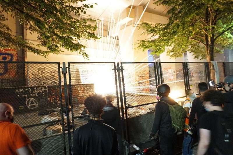 "Несколько сотен протестующих у суда в Портленде перелезают через высокий металлический забор, которым было обнесено здание, и бросают туда петарды и другие горящие предметы. Несколько раз из здания выходили федеральные силовики: они пытались оттеснить демонстрантов с помощью слезоточивого газа, шумовых гранат и других спецсредств. Однако когда они возвращались в здание, протестующие возобновляли осаду" - пишет корреспондент.
