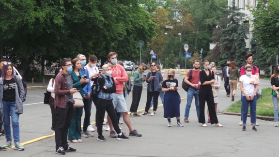 Під будівлю МВС прийшли декілька десятки активістів, вони скандували Аваков — чорт та Що сталося з Олексієм Кучапіним?