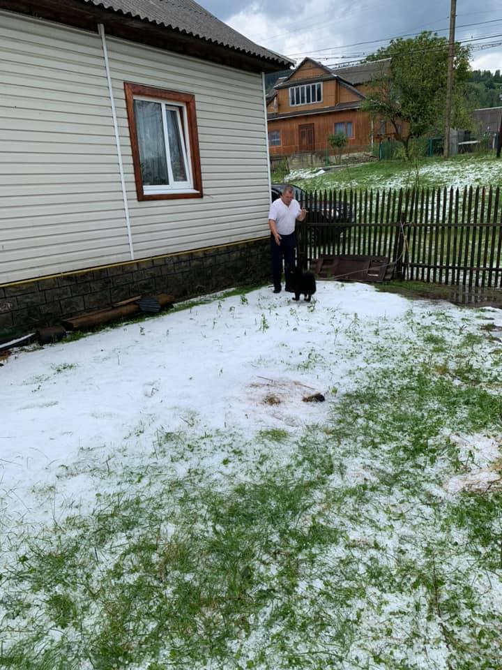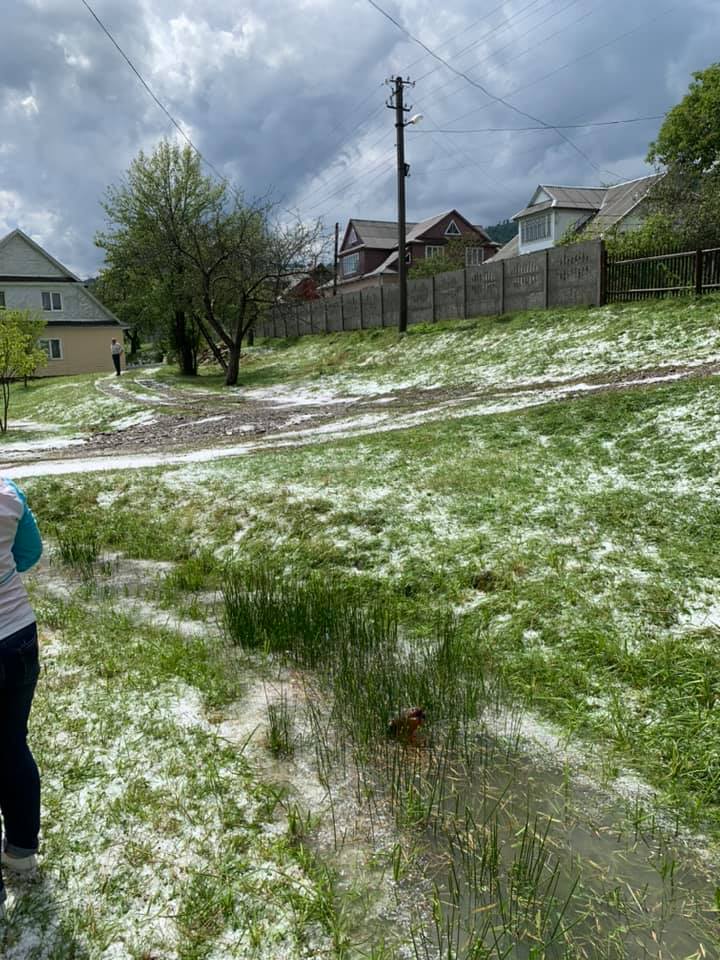 В Яремче большое количество града буквально за несколько минут засыпало всю землю.