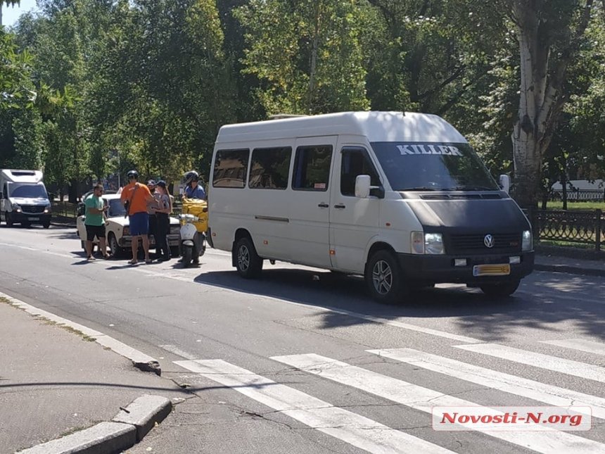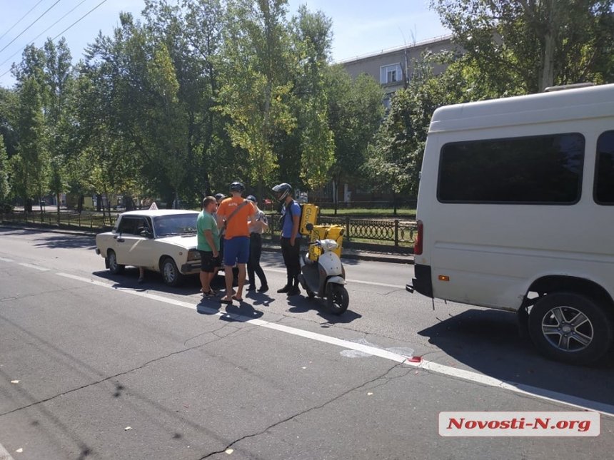 В центре Николаева курьер Glovo на мопеде врезался в микроавтобус