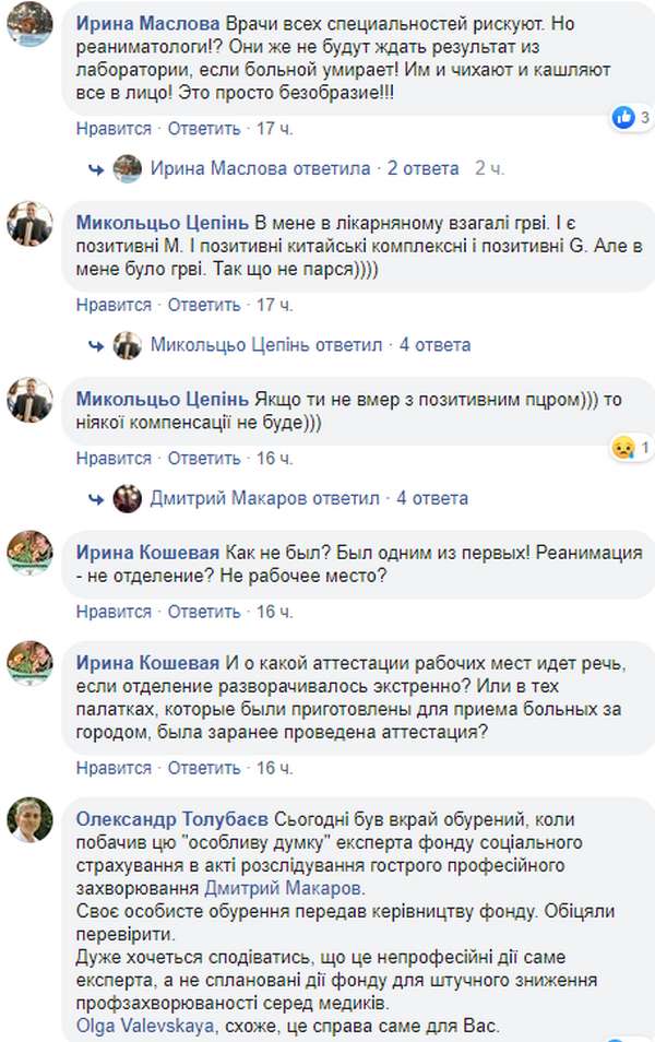 Подписчики оставили под постом медика массу возмущенных комментариев и призывают Макарова не пускать ситуацию на самотек, а бороться — обращаться в МОЗ, идти в суд и требовать справедливости.
