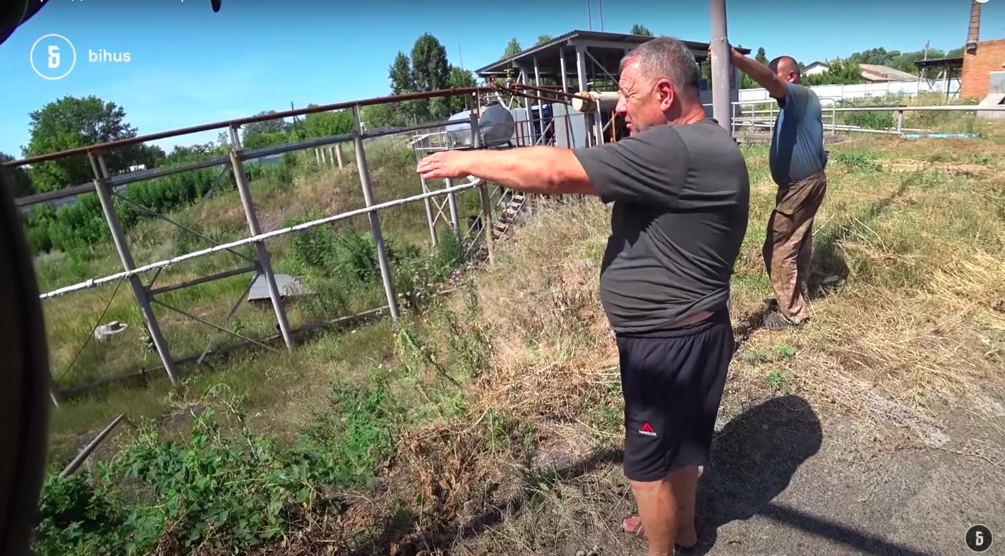Денис Бигус выехал по указанному адресу в село Заводское Полтавской области и нашел «предприятие», о котором говорил Кива. Им оказался поросший бурьяном пустырь с грудой металлолома. «Это была жомовая яма. Потом Кива взялся, наш же полтавский черт лохматый, лысый правда. С госадминистрацией понятно, как оно решалось, как делалось. Вот это все, что построилось. Приезжал сегодня в полседьмого помощник депутата, заснял тут все в трех ракурсах», — показал объект собственник территории Анатолий.