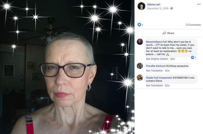 Под обновленным уже после возвращения в Украину фото профиля Лери оставил свой комментарий сын убитого итальянца Массимилиано: "Почему не выходите на связь? Если не хотите говорить со мной, то хотя бы с моей сестрой. Думаю, вы обязаны объясниться. Позвоните".