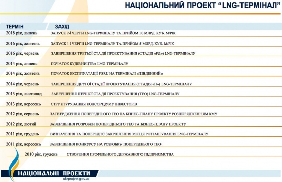 Майже синхронно з литовцями виступила із своєю LNG-ініціативою Україна. Проект "LNG Україна" був ініційований у серпні 2010 року.