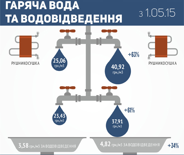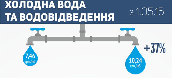 Зростання цін на енергоносії не могло не спричинити підвищення цін на холодну воду. Окрім цього, подорожчання цієї послуги зумовлене також введенням у дію тарифу виконавця послуг – додаткові 1,548 гривні/м3, якого не було до 1 травня 2015 року і чим монополіст виправдовував свою бездіяльність у багатьох питаннях.