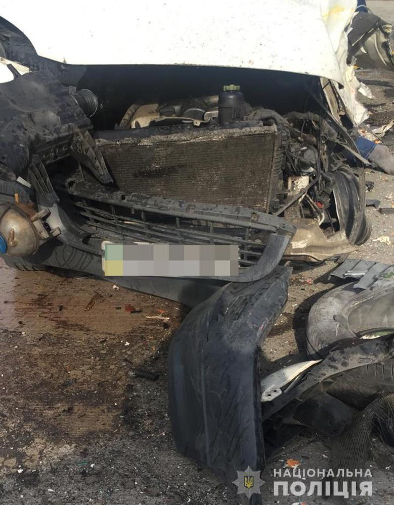 Погибли водитель и трое пассажиров маршрутного автобуса, а водитель фуры, 64-летний житель Запорожья, получил травмы.