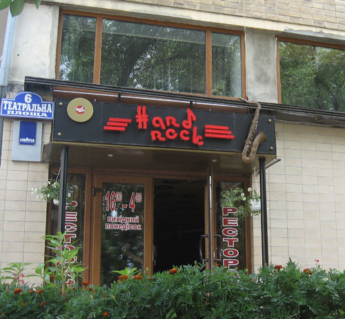 В центре Черновцов, на Театральной площади недалеко от одной из троллейбусных остановок, в маленьком, почти крошечном скверике расположено известное в городе заведение "Hard Rock".