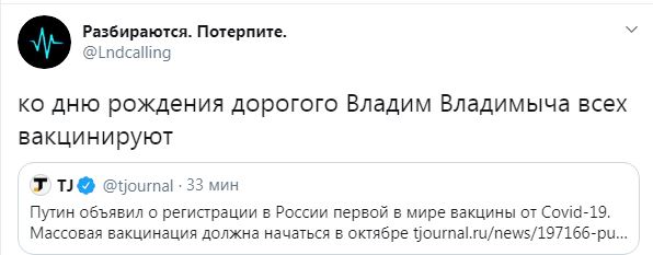 «Одна из моих дочерей сделала себе такую прививку. В этом смысле она поучаствовала в эксперименте. После первой прививки температура у нее была 38, на следующий день — 37 с небольшим и все», — заявил президент РФ.