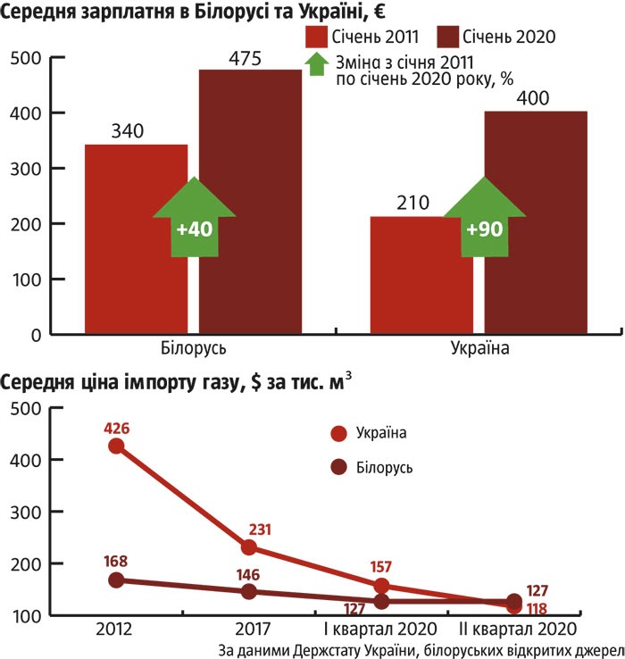 Снижение цен на энергоносители на мировом рынке ухудшило, а то и нивелировало выгоды от льготных российских цен на энергоносители. В втором квартале 2020 года цена газа для Беларуси впервые за последние десятилетия оказалась даже выше средней стоимости импорта голубого топлива украинскими компаниями ($127 и $118 за 1 тыс. м3 соответственно). Но и в I квартале его цена для белорусской экономики уже не обеспечивала существенных преимуществ по сравнению с соседними странами, которые покупали топливо на рыночных условиях. Например, Украине его импорт обходился в среднем лишь в $157 за 1 тыс. м3 (при белорусских $127), а в некоторых европейских странах газ продавался еще дешевле. Это лишило энергетически неэффективную экономику Беларуси основного конкурентного преимущества, на которое годами делал ставку Лукашенко, идя на уступки России и даже отдав ей полный контроль над ГТС в конце 2011-го.
