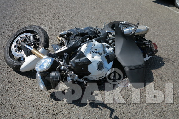 Как сообщает корреспондент «ФАКТОВ», со слов водителя автомобиля, он двигался на выезд из города. Перед АЗС начал маневрировать водитель мотоцикла. Транспорт в левом ряду приостановился. Стали тормозить и водители, движущиеся в среднем ряду. А водитель BMW, ехавший в крайней правой полосе, мотоциклиста не видел и продолжил движение.