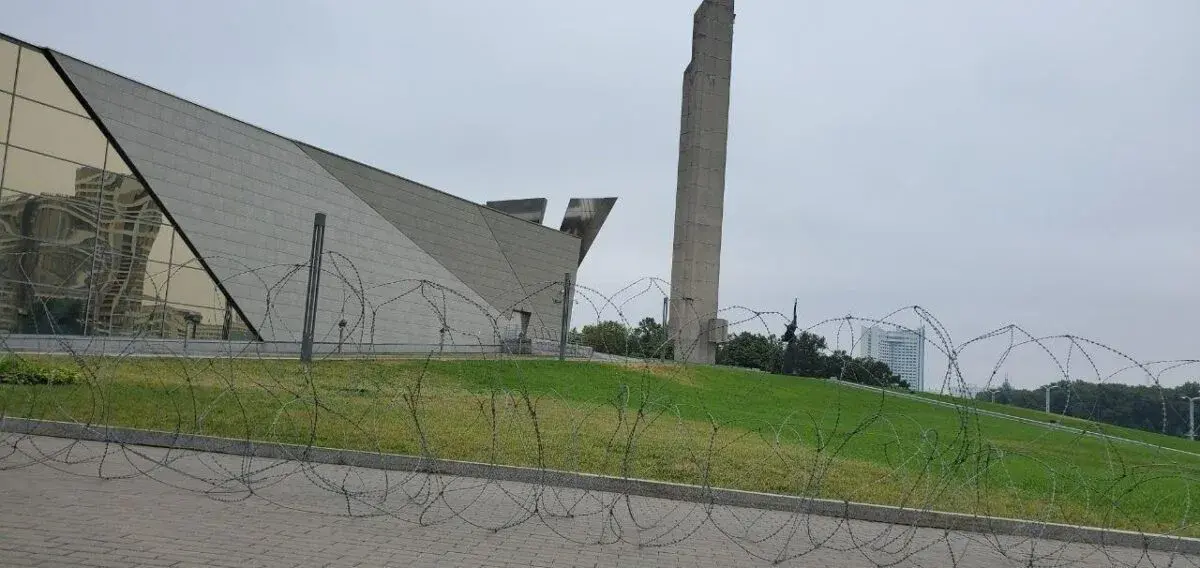 Стеллу «Минск — город-герой» оградили колючей проволокой.