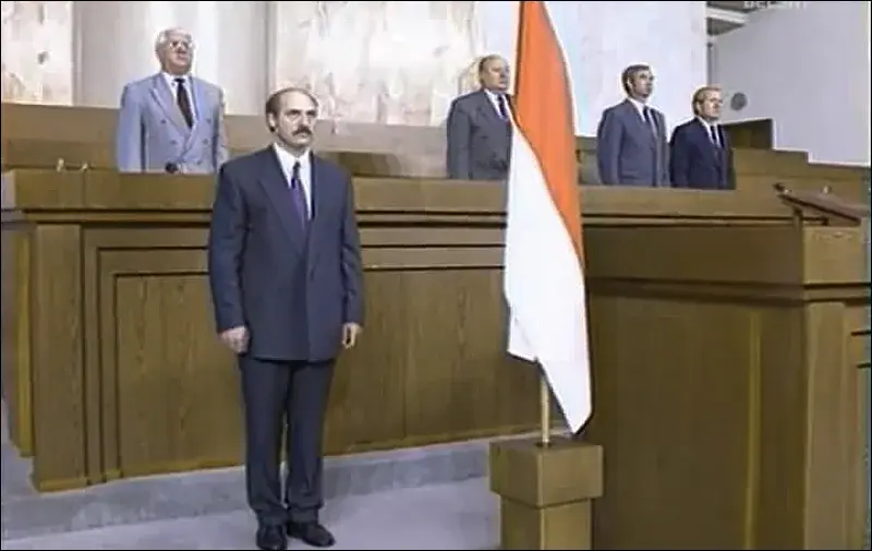 Именно под историческими символами Лукашенко впервые присягал белорусам в 1994 году.