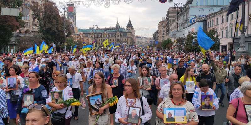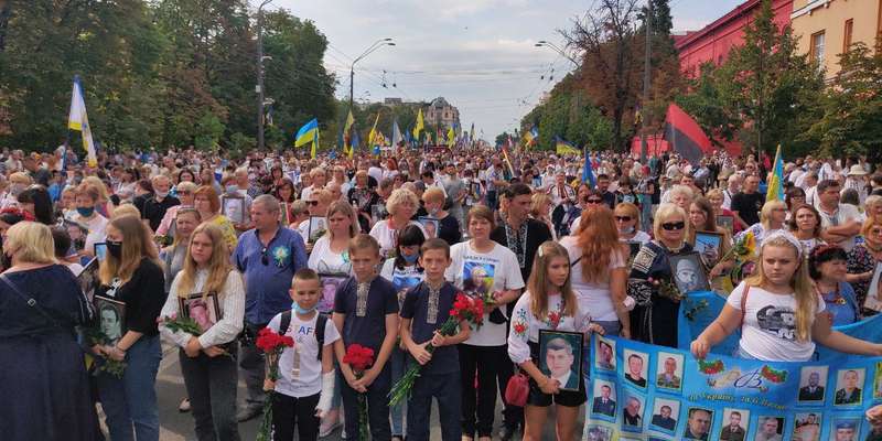 Багато учасників маршу принесли з собою портрети загиблих захисників України.
