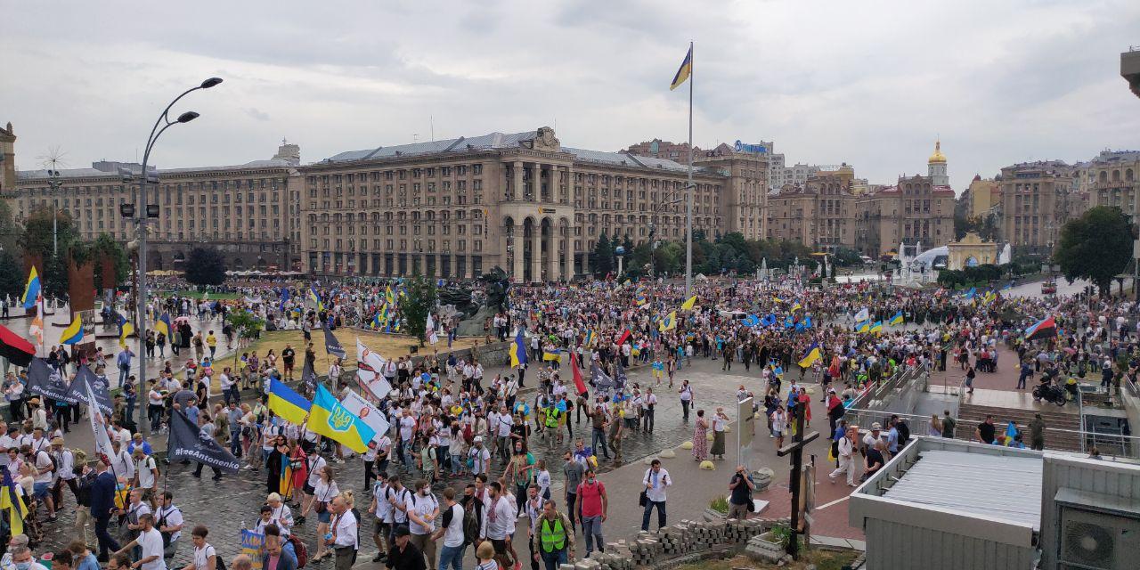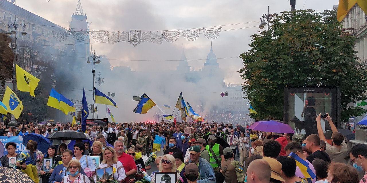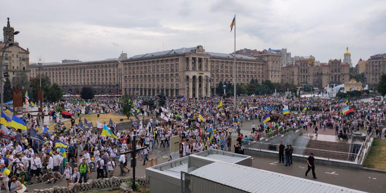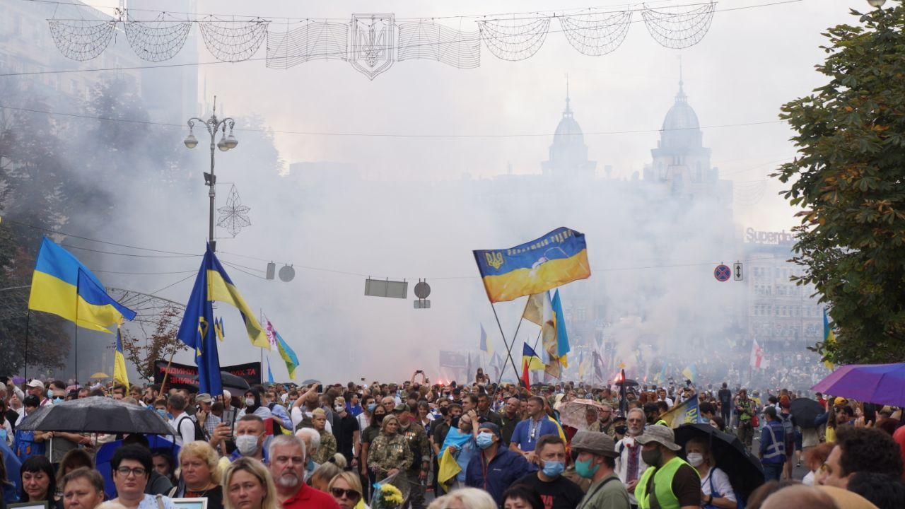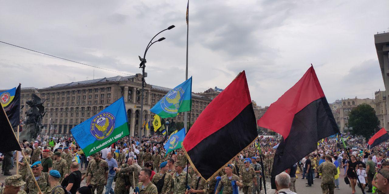 Багатотисячний марш ветеранів російсько-української війни та громадських активістів прийшов на Майдан Незалежності.