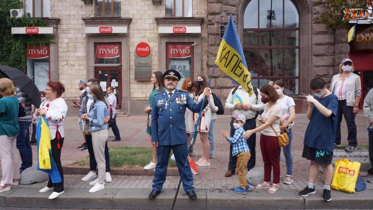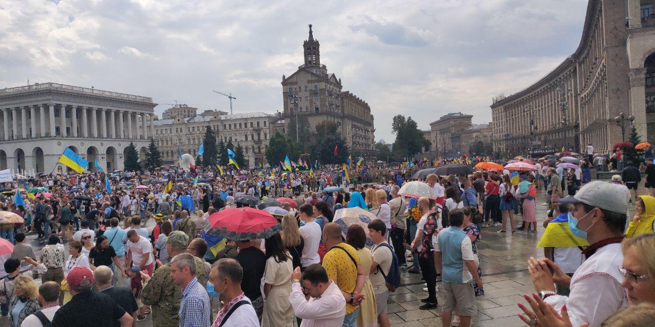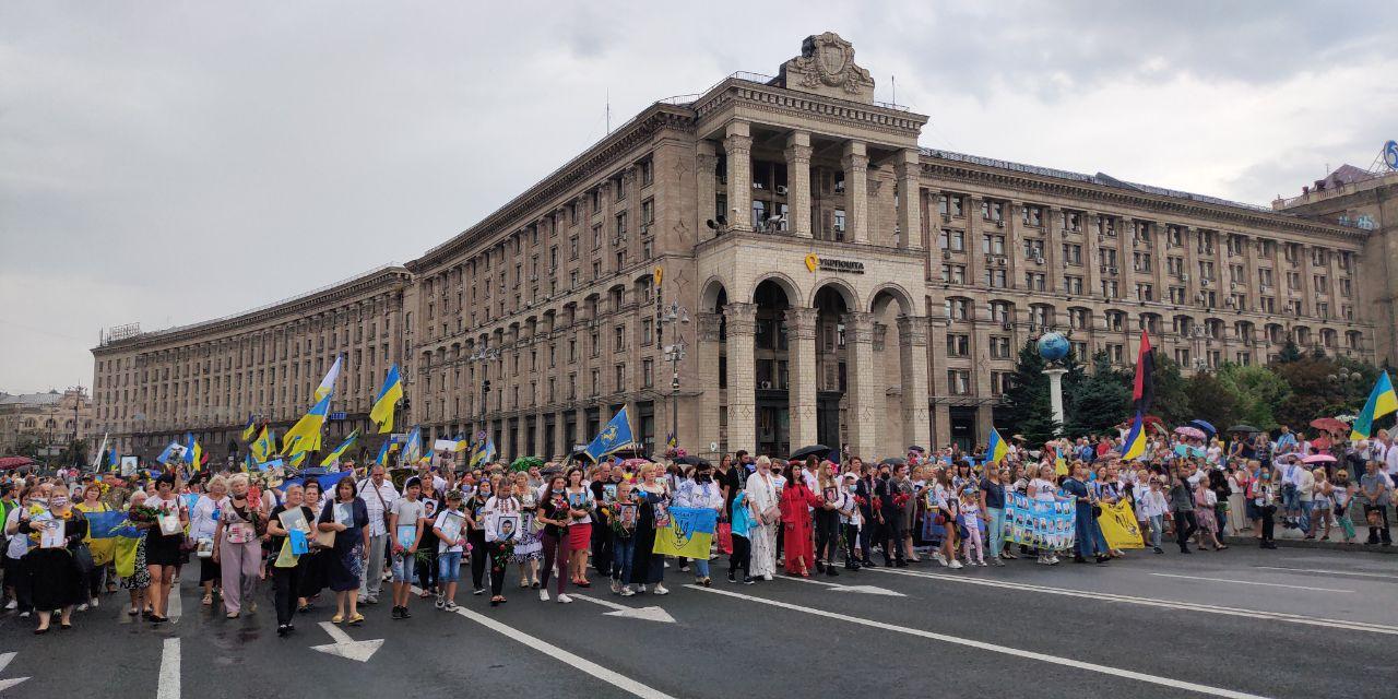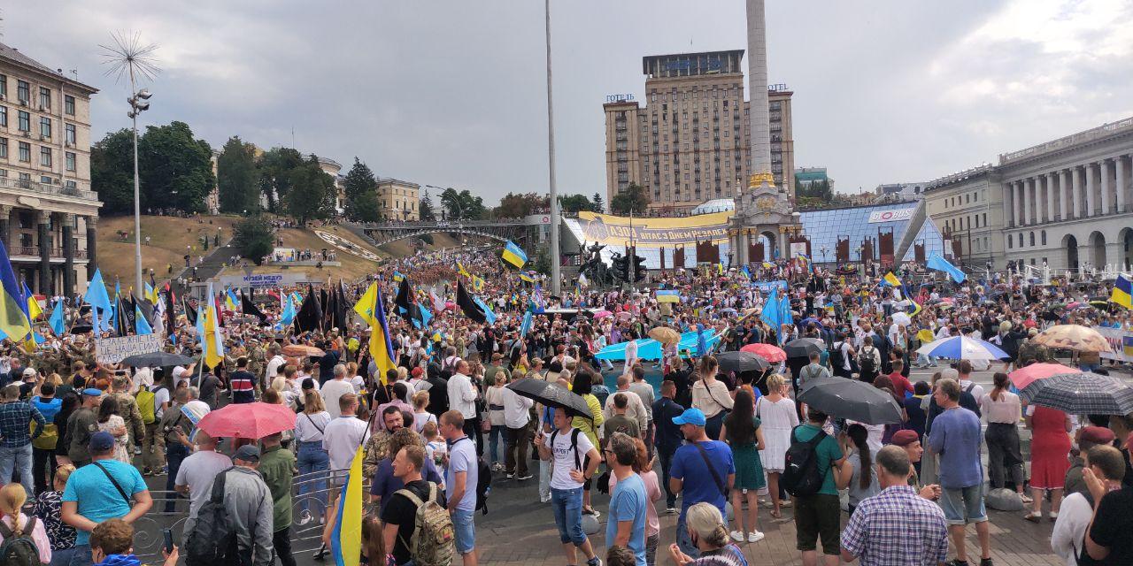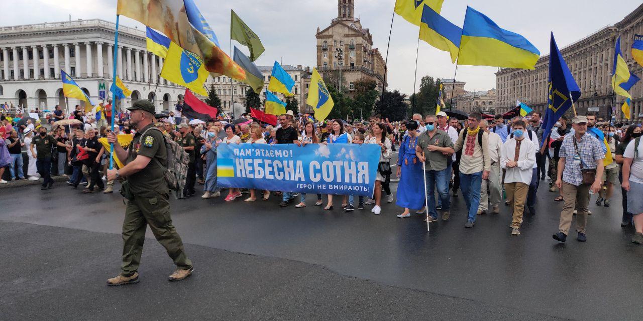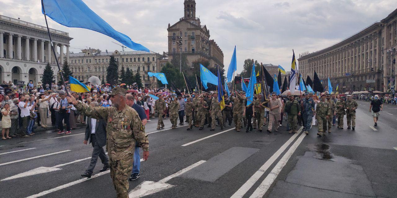 Багатотисячний марш ветеранів російсько-української війни та громадських активістів прийшов на Майдан Незалежності.