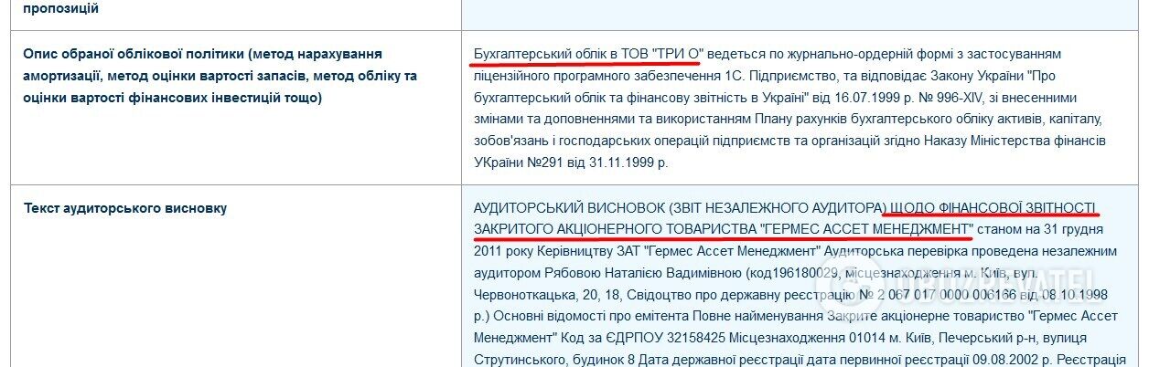 И еще. Компания "Гермес Ассет Менеджмент" вела бухгалтерский учет в ООО "ТРИ О". Данные об этом также есть в информационных базах Нацкомиссии по ценным бумагам.
