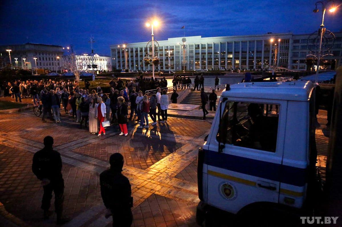 К 21:15 ОМОНовцы покинули площадь, а людей из костела выпустили.