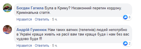 «Хотела написать пару слов в ее Инстаграм, но нет – комментарии ограничены. Боится все же любви украинцев», «Была в Крыму? Незаконное пересечение границы! Криминальная статья!», «К сожалению, это только начало . Скоро все русское шобло будет тут с концертами. Возвращаемся туда, откуда пытались сбежать», — отреагировала Сеть на визит россиянки в Украину.