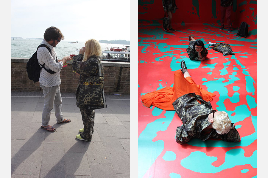 Люди в военной форме с надписью«оn vacation» оккупировали резиденцию РФ в первый же день ее открытия на крупнейшем форуме современного искусства. Все они, подражая российским «зеленым человечкам», заявляют, что находятся в отпуске. Активисты раздавали форму всем желающим и призывали присоединяться к «отпуску». При этом автору лучше тематической фотографии обещают приз: поездку в Крым. Platfor.ma удалось поговорить с одним из «отпускников» и выяснить, кто организовал акцию и в чем ее цель.