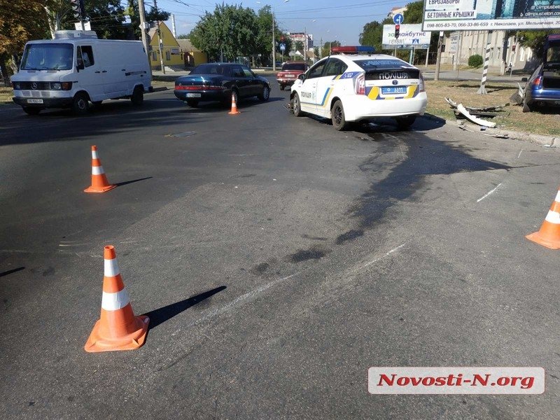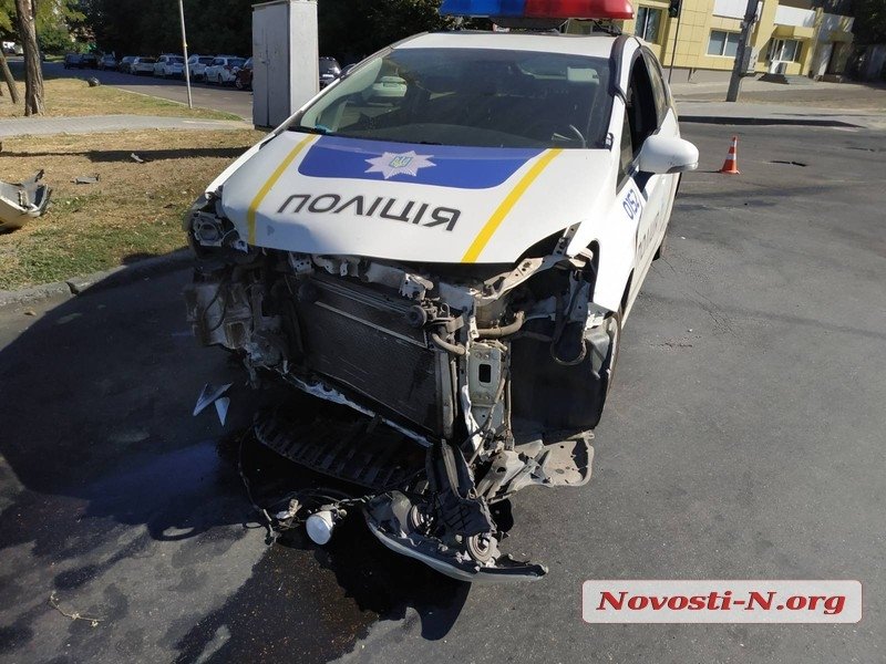 Утром в субботу, 29 августа, на пересечении улиц Садовой и Скороходова в Николаеве столкнулись патрульный автомобиль полиции Toyota Prius и Seat.