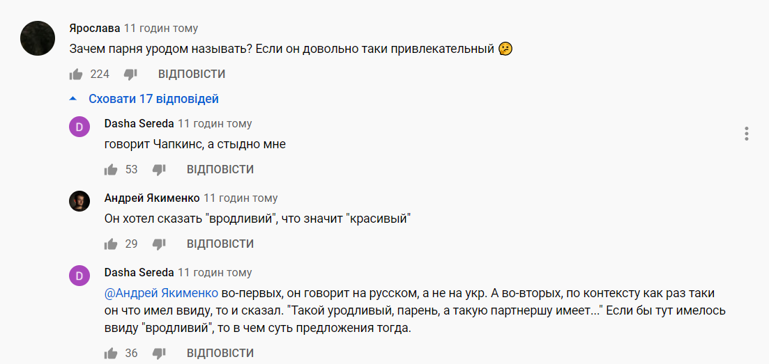 Чапкис назвал Диму Жука "уродливым": в сети споры Скриншот комментариев на YouTube